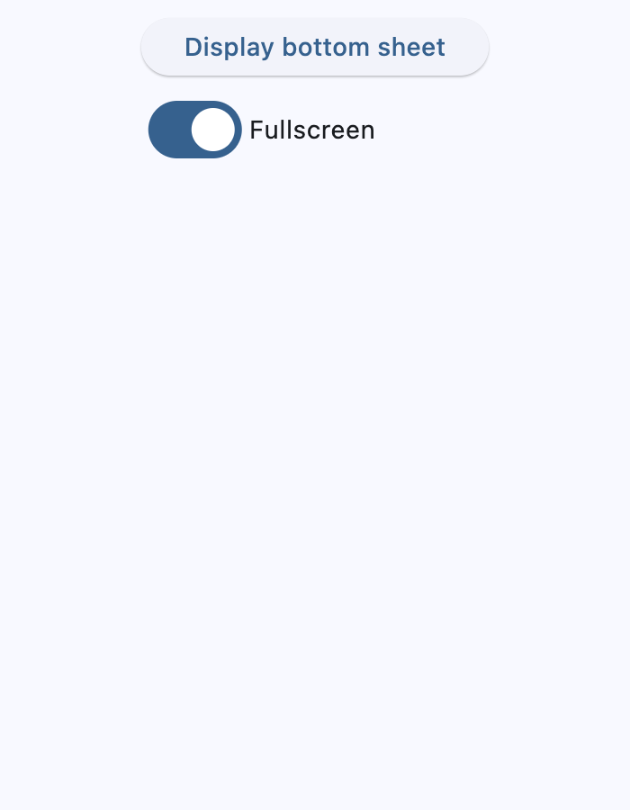 animation_style- The animation style of this bottom sheet.barrier_color- The color of the scrim that obscures content behind this bottom sheet.bgcolor- The background color of this bottom sheet.clip_behavior- Defines how the content of this bottom sheet should be clipped.content- The content of this bottom sheet.dismissible- Specifies whether this bottom sheet will be dismissed when user taps on the scrim.draggable- Specifies whether this bottom sheet can be dragged up and down and dismissed by swiping downwards.elevation- Defines the size of the shadow below this bottom sheet.fullscreen- Expands the sheet to fill the window/page height.maintain_bottom_view_insets_padding- Adds a padding at the bottom to avoid obstructing this bottom sheet'scontentwith on-screen keyboard or other system elements.scrollable- Removes the half-height cap so the sheet can grow with its content.shape- Defines the shape of this bottom sheet.show_drag_handle- Whether to display drag handle at the top of sheet or not.size_constraints- The size constraints to apply to this bottom sheet.use_safe_area- Specifies whether the sheet will avoid system intrusions on the top, left, and right.